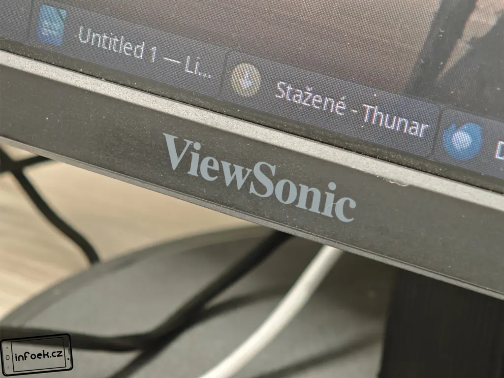 ViewSonic VG2408A je možné sehnat za 2 711 Kč s DPH. Cena se drží opravdu nízko, přesto monitor působí velmi dobrými dojmy. Na čelní straně najdeme 24palcový IPS displej, jehož rámečky jsem na horní části a po stranách opravdu minimální. Tlustší část najdeme pod displejem, ale stále se nejedná o žádnou tragédii. Nachází se zde logo výrobce a vpravo popisky funkce tlačítek.