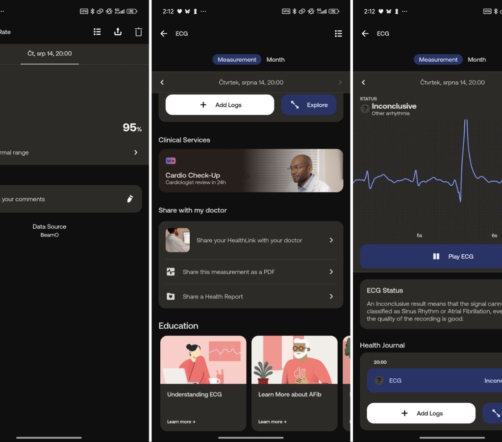Musíte aplikaci používat i nadále? To už je čistě na vás. Pokud chcete dlouhodobě ukládat údaje o okysličení krve, EKG a další naměřené hodnoty, aplikace se vám bude hodit – data se ukládají a kdykoli je můžete zpětně zobrazit. Pokud ale o archivaci nestojíte a chcete se jen měřit, aplikaci vůbec nepotřebujete. Díky tomu je BeamO vhodný i pro rodiče nebo prarodiče, kteří s chytrými telefony příliš nepracují.