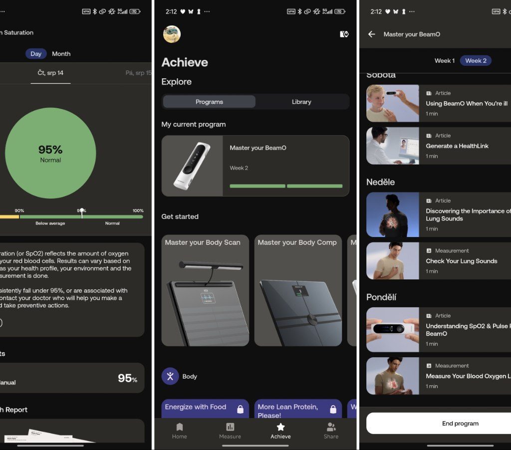 Výhodou aplikace je ale možnost bezplatného ukládání záznamů do cloudu. Snadno tak můžete kombinovat více produktů značky Withings – například BeamO, hybridní hodinky nebo chytrou váhu. Získáte tím ucelený přehled o svém zdraví a v případě potřeby lze dokonce vygenerovat PDF report pro lékaře. Všechna data jsou navíc ukládána na serverech v EU, což je důležité z hlediska bezpečnosti.