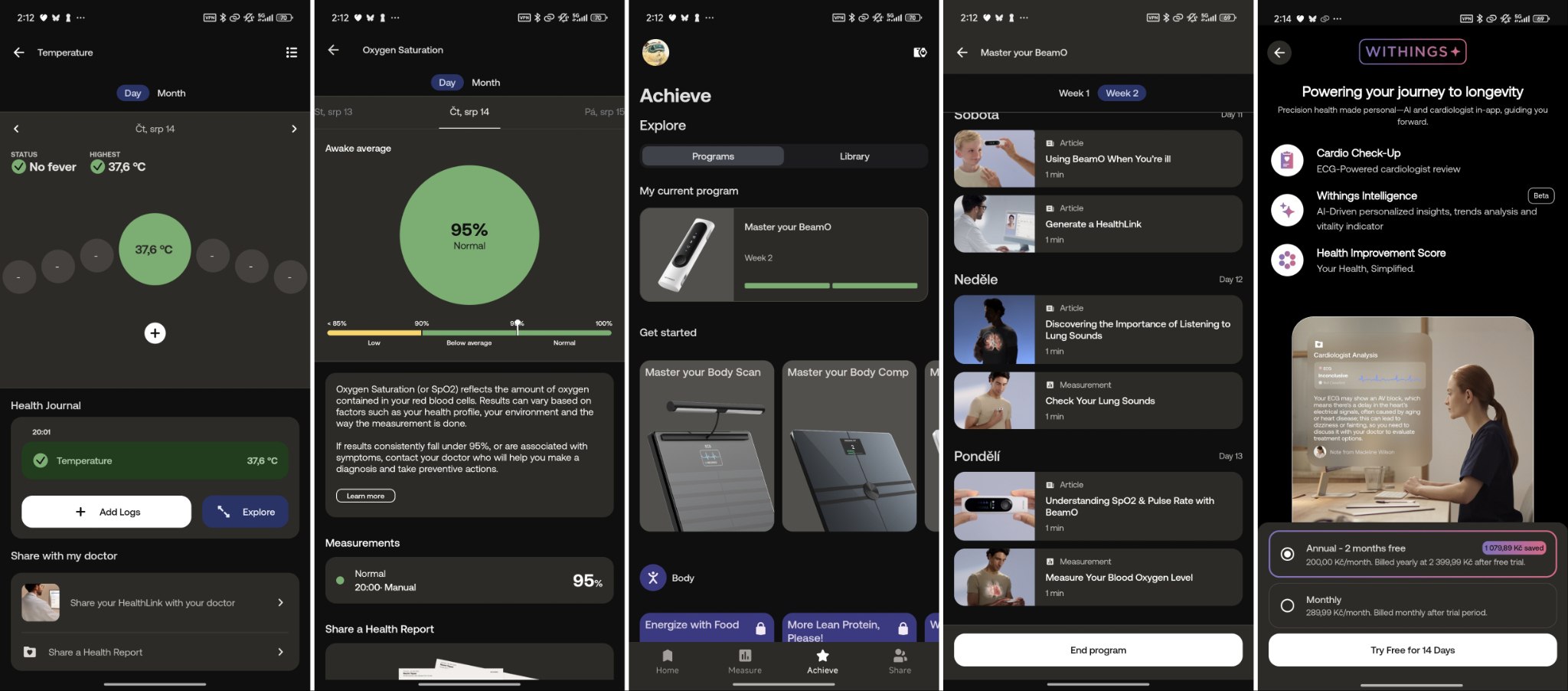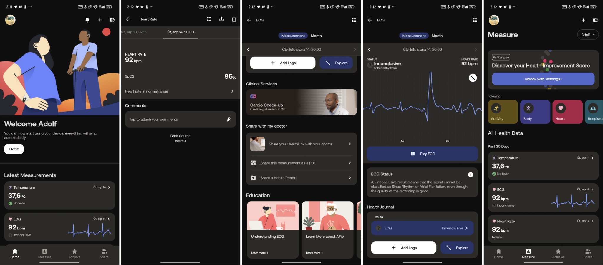 Výhodou aplikace je ale možnost bezplatného ukládání záznamů do cloudu. Snadno tak můžete kombinovat více produktů značky Withings – například BeamO, hybridní hodinky nebo chytrou váhu. Získáte tím ucelený přehled o svém zdraví a v případě potřeby lze dokonce vygenerovat PDF report pro lékaře. Všechna data jsou navíc ukládána na serverech v EU, což je důležité z hlediska bezpečnosti.