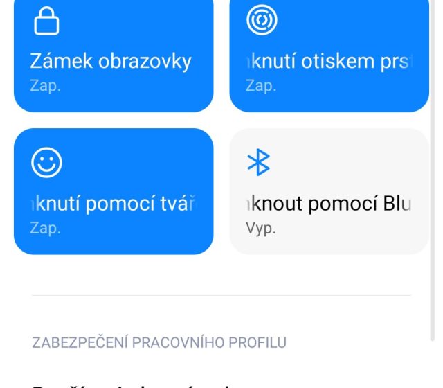 Odemykání mobilu a zabezpečení