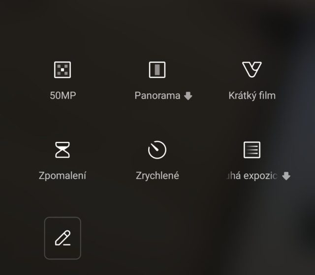 Níže v aplikace se nachází trojice tlačítek pro přepínání mezi fotoaparáty a zoom. Pod tlačítkem kouzelné hůlky jsou filtry a zkrášlení obličeje. V případě režimu video je zde i bokeh režim s rozostřením. Přepínání mezi režimy je pohodlné a rychlé. Mezi nimi najdeme portrétní režim s rozostřeným pozadím pro zadní i přední kameru, skenování dokumentů, PRO režim s manuálním nastavením parametrů a efektivní noční režim. V případě PRO režimu je nahoře také šipka, a ta nabídne možnost přepnutí formátu fotky JPEG nebo RAW, zvýraznění a focení v maximálním 50 Mpx rozlišení.