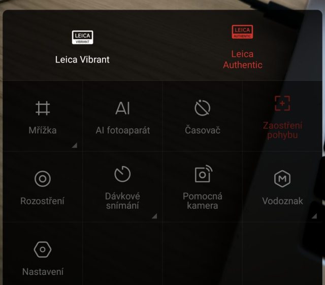V mobilu Xiaomi 13T je již nová aplikace fotoaparátu. Nová verze má již trochu jiné prostředí a pod šipkou v horní části v režimu focení se nachází nastavení HDR, stylů Leica, poměru stran, AI barev, časovač a pro focení objektů v pohybu oceníte zaostření pohybu. Nastavit si můžete i vodoznak fotek, mřížku, rozostření a přejít do podrobného nastavení aplikace. V horní části se můžete ikonou LEICA mezi styly LEICA Aurthentic a LEICA Vibrant přepínat.