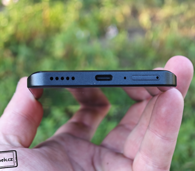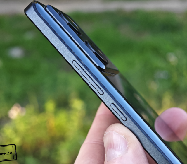 Rám mobilu je z pevného plastu a na jeho horní části najdeme mikrofony a infraport pro ovládání domácích spotřebičů. Levý bok mobilu je zcela prázdný a pravý na sobě nese plastová tlačítka pro regulaci hlasitosti a zamykací tlačítko. Nijak se neviklají a jejich umístění mi vyhovuje. Vespod mobilu je slot pro nanoSIM karty, mikrofon, USB-C konektor a hlasitý reproduktor.