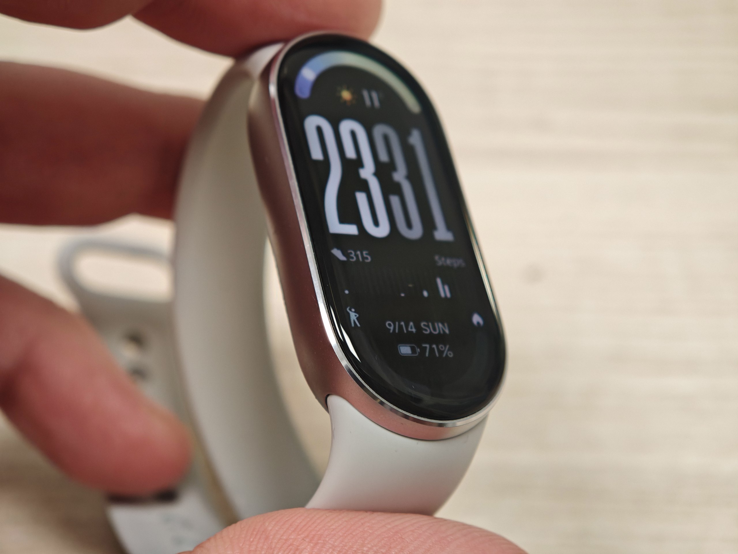 Xiaomi Smart Band 10 nabízí na poměry náramků velký 1,72palcový OLED displej. Jeho rámečky jsou velmi tenké, rozlišení činí 212 × 520 px a nechybí senzor okolního světla pro automatickou regulaci jasu. Ta funguje spolehlivě a spokojený jsem byl i s maximálním jasem 1 500 nitů a barevným podáním OLED panelu.