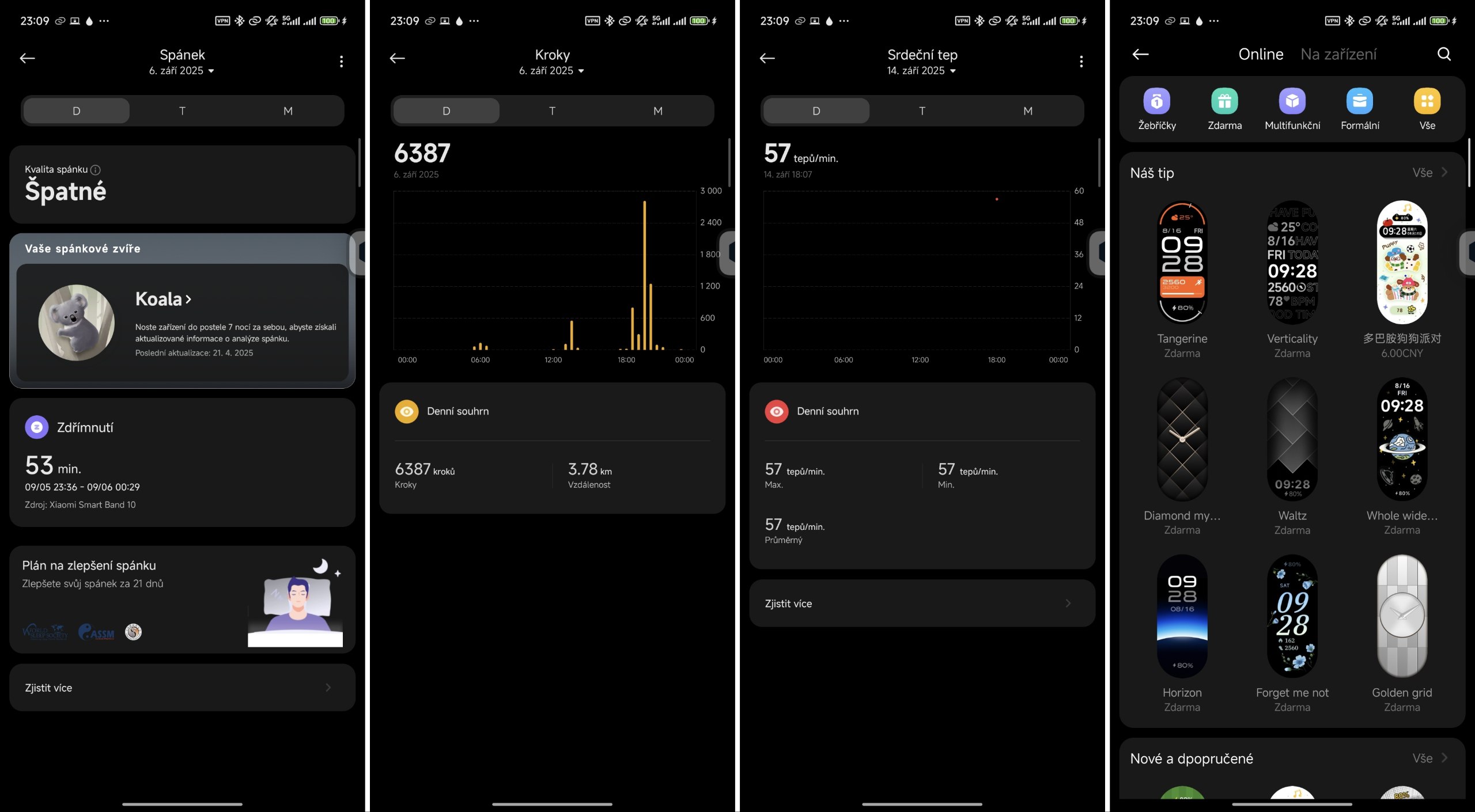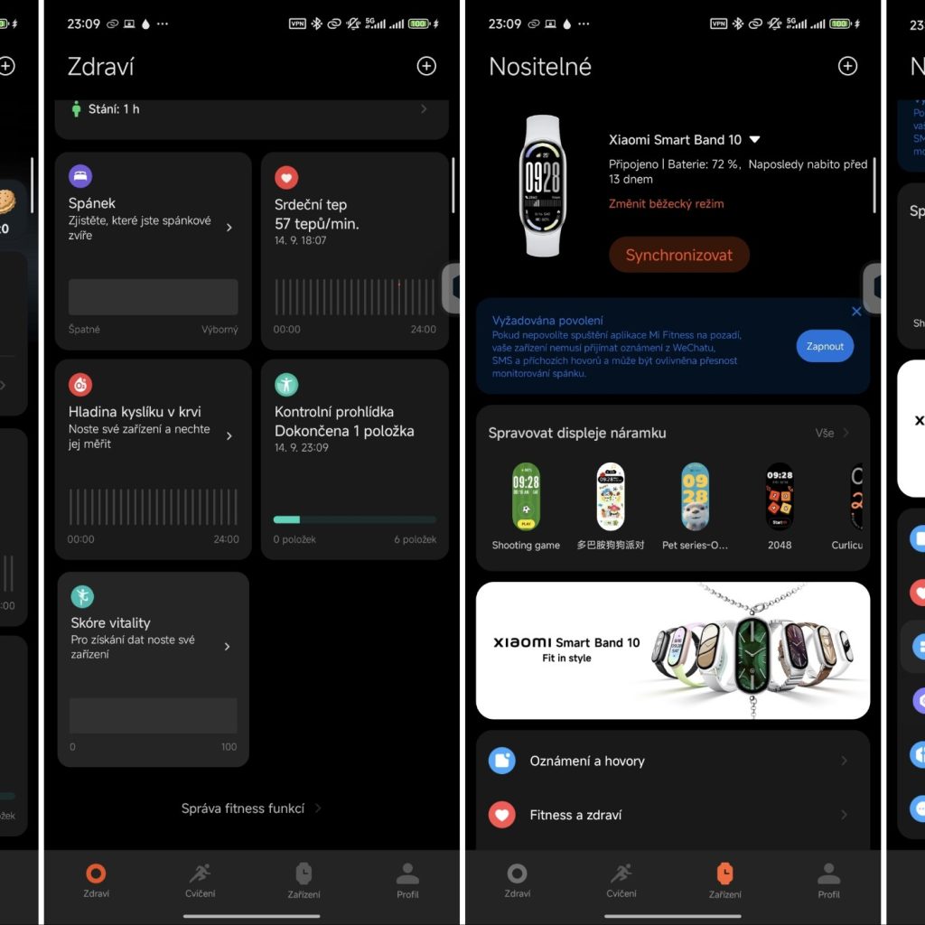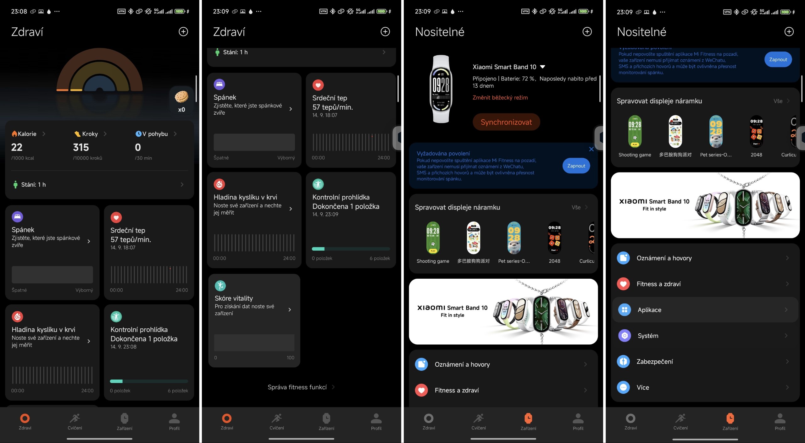Xiaomi Smart Band 10 komunikuje s mobilními telefony prostřednictvím Bluetooth 5.4 a jeho párování je velmi jednoduché. Podporovány jsou mobily s Androidem i iOS, takže Smart Band může využívat každý. Pro obě platformy je dostupná aplikace Mi Fitness, která má příjemné uživatelské prostředí v češtině, nabízí veškeré nastavení i podrobné statistiky. Nechybí ani funkce menstruačního kalendáře.