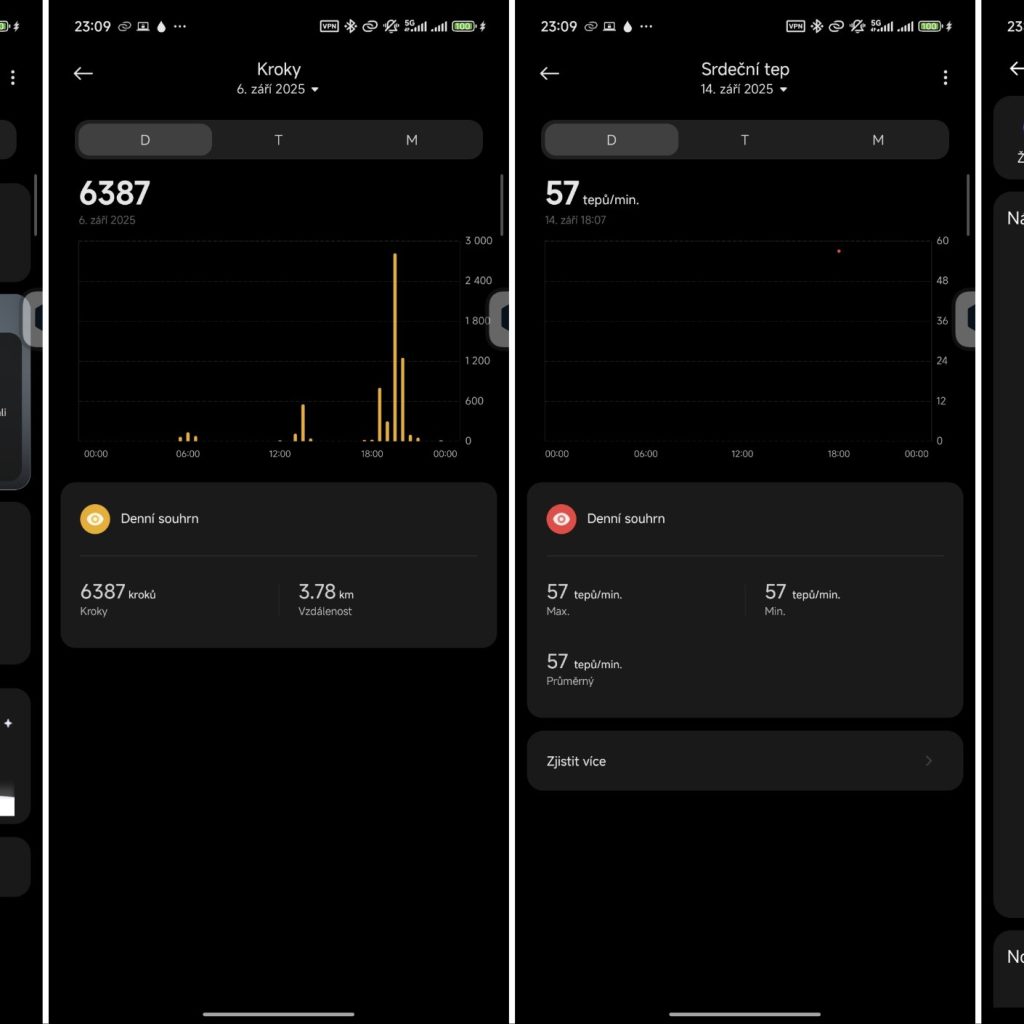 Xiaomi do svých náramků vždy umí vměstnat všechny potřebné senzory. Zvládá tedy běžné měření kroků, ušlé vzdálenosti, spálené kalorie, srdeční tep, okysličení krve (SpO2), míru zátěže a spánek. To vše zvládá dobře a pochvaloval jsem si především vylepšený monitoring spánku s rozdělením mezi lehký a REM spánek. Zaznamená také krátká zdřímnutí během dne.
