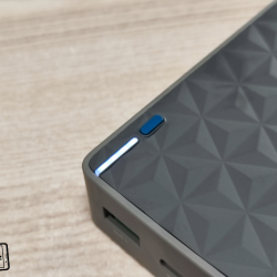 Na powerbance se nachází modré tlačítko pro rozsvícení bílé diody znázorňující stav nabití. Dioda bude svítit také po celou dobu nabíjení zařízení. Dále se na powerbance nachází jen trojice nabíjecích konektorů a nutné popisky.