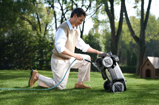 Díky krytí IPX6 je RockMow X1 LiDAR odolný vůči dešti a lze jej po zabláceném sečení opláchnout zahradní hadicí. Integrovaný dešťový senzor automaticky navede sekačku zpět do dokovací stanice při detekci srážek a znovu spustí sečení až ve chvíli, kdy jsou podmínky ideální pro kvalitní řez.
