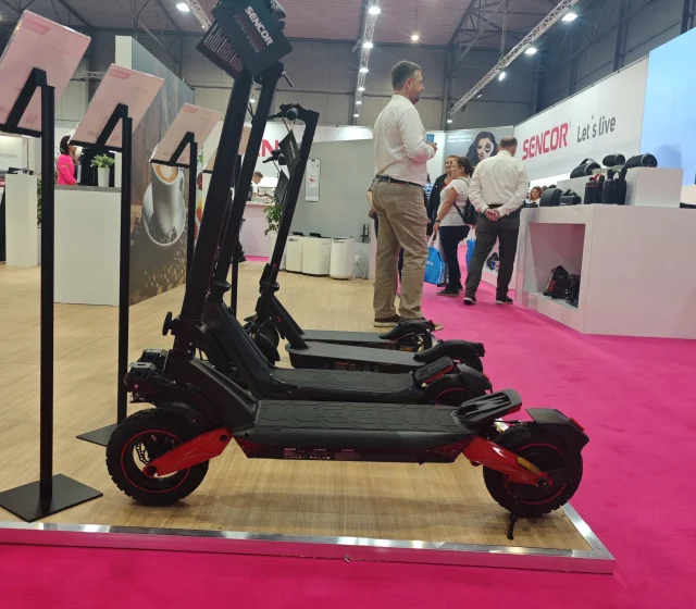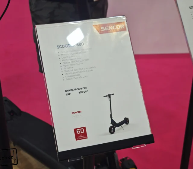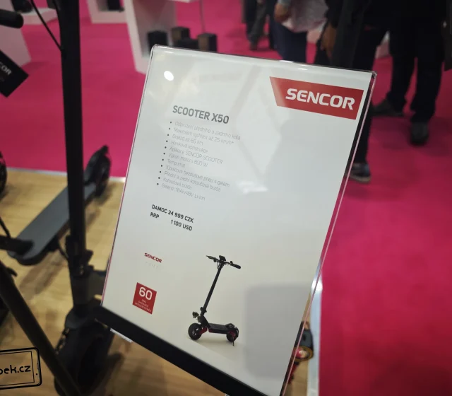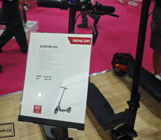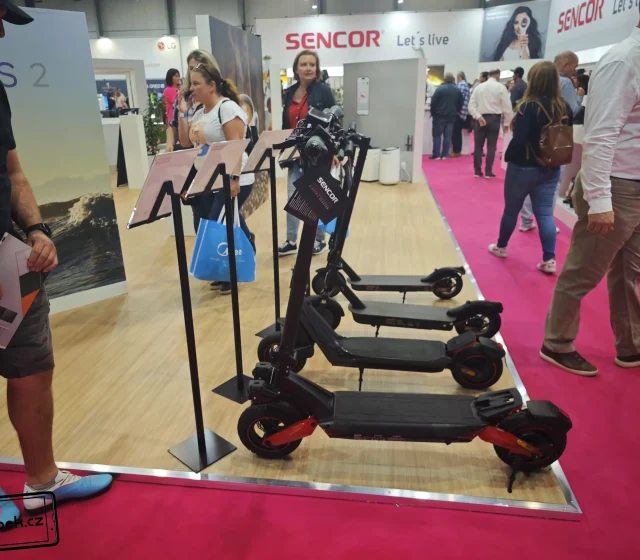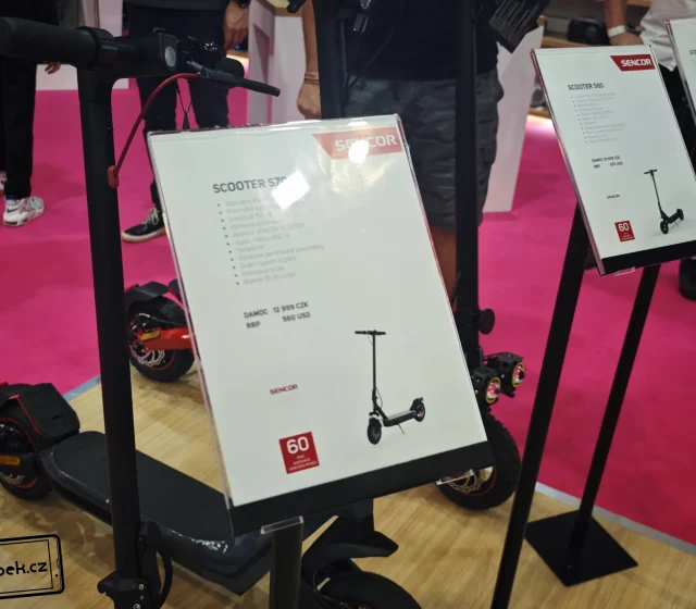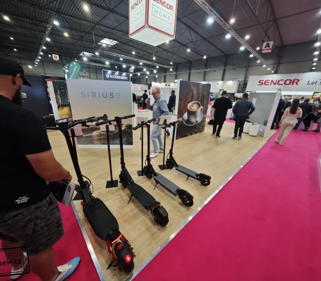 Elektrické koloběžky jsou velice oblíbené a SENCOR jich má ve svém portfoliu celkem dost. Většina lidí používá dostupnější modely, ale já si prohlížel především výkonnější model SENCOR SCOOTER X50. Konstrukce této koloběžky je totiž robustnější, má odpružení obou kol, motor o výkonu 800 W a pomocí kombinace je možné vypnout omezovač rychlosti. On ale i vystavený model SENCOR SCOOTER S80 vypadal skvěle.