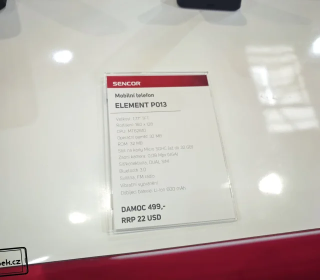 Vystaveny měl SENCOR také své akční kamery a vedle nich také jeden mobilní telefon SENCOR ELEMENT P013. Jedná se o malý tlačítkový mobil pro nenáročné uživatele. Stojí 499 Kč s DPH a je určen tedy především na volání a SMS.