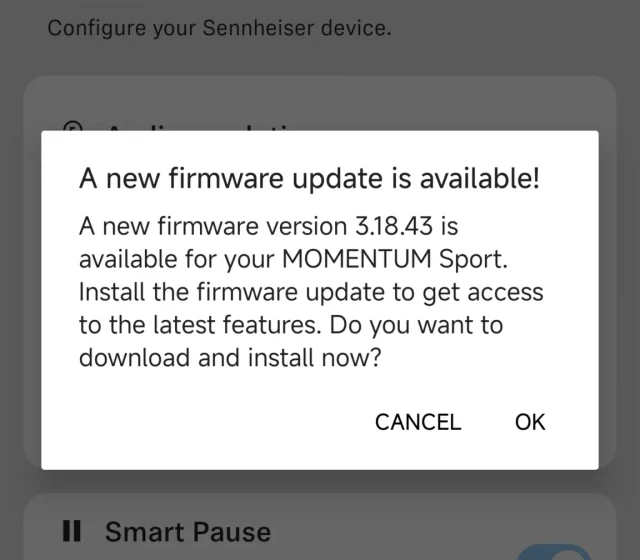 V dnešní době má téměř každé zařízení možnost aktualizací, což sice dost lidem vadí, ale výrobci tak mohou opravovat známé chyby y vylepšovat současné funkce. Právě i sluchátka Sennheiser je možné aktualizovat a dnes vyšla aktualizace pro model MOMENTUM Sport. Líbí se mi, že výrobce dostupnost aktualizací oznamuje pomocí oznámení, a to i když sluchátka zrovna nejsou připojena k aplikaci. Ona vlastně celá aplikace prošla příjemným vylepšením.