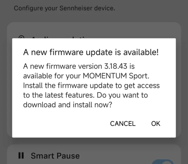 V dnešní době má téměř každé zařízení možnost aktualizací, což sice dost lidem vadí, ale výrobci tak mohou opravovat známé chyby y vylepšovat současné funkce. Právě i sluchátka Sennheiser je možné aktualizovat a dnes vyšla aktualizace pro model MOMENTUM Sport. Líbí se mi, že výrobce dostupnost aktualizací oznamuje pomocí oznámení, a to i když sluchátka zrovna nejsou připojena k aplikaci. Ona vlastně celá aplikace prošla příjemným vylepšením.