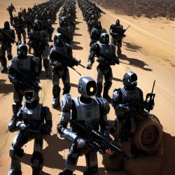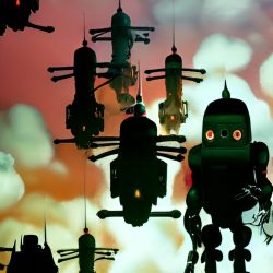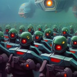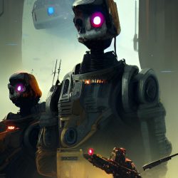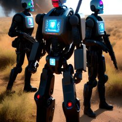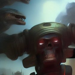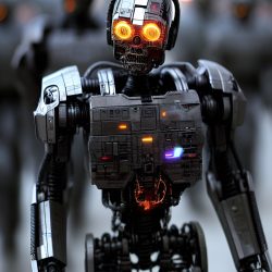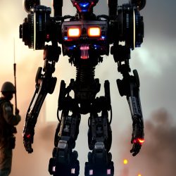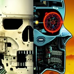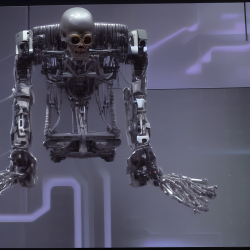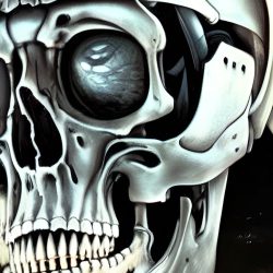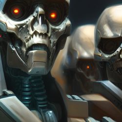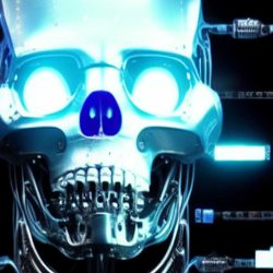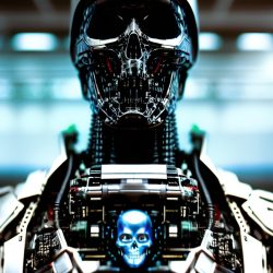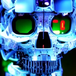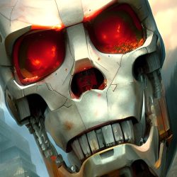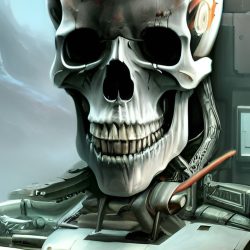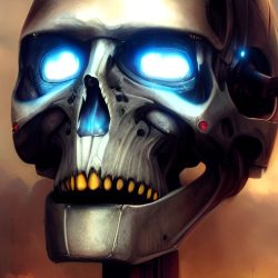 Umělé inteligenci však nelze přiřadit žádnou podobu. Zkusil jsem se tedy přímo umělé inteligence zeptat, jak podle ní Skynet vypadá. Často vygenerovala pěkné obrázky, které však nijak pozitivní nejsou. Často zobrazují roboty, válku a lebky.
