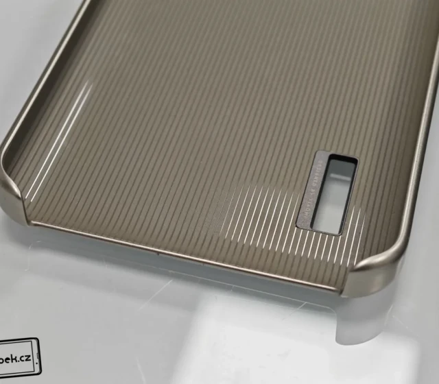 Samotné zpracování krytu se mi líbí a abych pravdu řekl, na různých fotkách a videích na internetu se mi vůbec nelíbil. Když ho ale mám v ruce, vypadá skvěle a svým designem se snaží přiblížit fotoaparátům. Nechybí mu potřebné výřezy pro reproduktory, kovové kroužky kolem modulu fotoaparátu drží bez problémů a žádný problém jsem nezaznamenal ani s připojováním druhé části (gripu) s tlačítky a akumulátorem. Grip má otvor pro uchycení poutka. Připnout si můžete i nějaké lepší přes rameno.