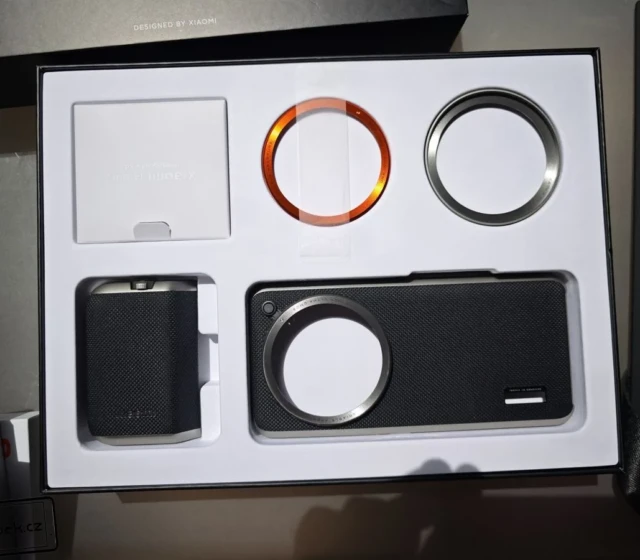 Xiaomi 14 Ultra Photogtaphy Kit se prodává v černé krabičce. Z venku vypadá pěkně a uvnitř má vše své místo. K dispozici je kryt na mobil, 1x oranžový designový hliníkový kroužek, 1x stříbrný designový kroužek a 1x kroužek (adapter) pro používání fotofiltrů. Dále v krabici najdeme jen malou krabičku s návody.