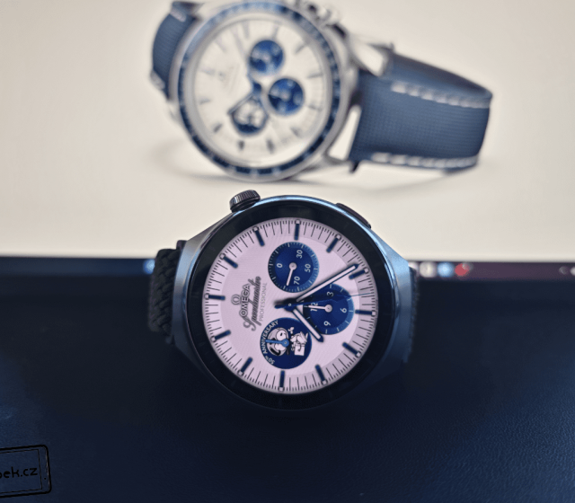 Ve svých hodinkách Huawei Watch 4 Pro má několik imitací ciferníků různých hodinářských společností. Na LTPO OLED displeji vypadají vážně působivě, a to latí i pro Always-On obrazovky (AOD). Vyzkoušel jsem si právě i ciferník z hodinek Omega Speedmaster “Silver Snoopy Award” 50Th Anniversary. Vývojáři se vážně povedl, vypadá moc pěkně a spokojený jsem i s jeho modrou Always-On obrazovkou. Vývojář si bohužel z logického důvodu nepřál jeho zmínku nebo poskytnutí jakýchkoliv odkazů na ciferník. Nenajdete ho tedy v běžné služby s ciferníky.