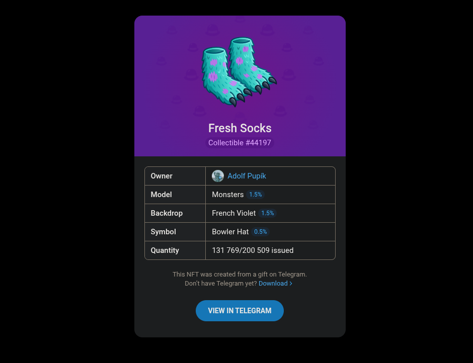 Obchodů s NFT je v rámci Telegramu a blockchainu TON více. Přímo Telegram nabízí vlastní kolekce, ale daleko více zajímavých NFT najdete v Portals nebo Tonnel Network. V Portals jsou nové podoby NFT v kolekcích Fresh Socks, Clover Pin a Sky Stilettos. Za sebe bych doporučil podívat se na model Monsters v kolekci Fresh Socks.