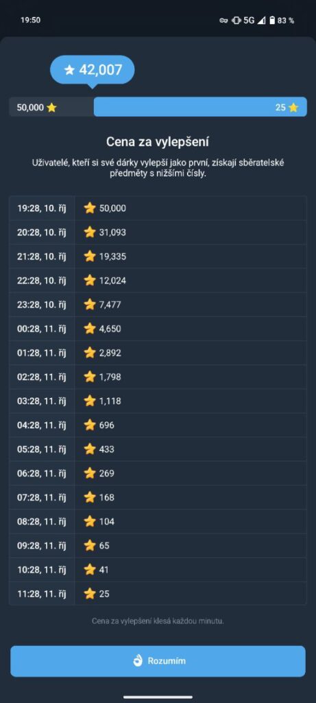 Pokud patříte mezi pokročilé uživatele NFT a Telegramu, zřejmě už víte, jak systém funguje. Když dorazí vylepšení hodnotných dárků, jejich cena v měně Telegram Stars se může lišit. Nově je navíc možné přímo pod dárkem zobrazit informace o tom, kdy přesně bude dané vylepšení dostupné.