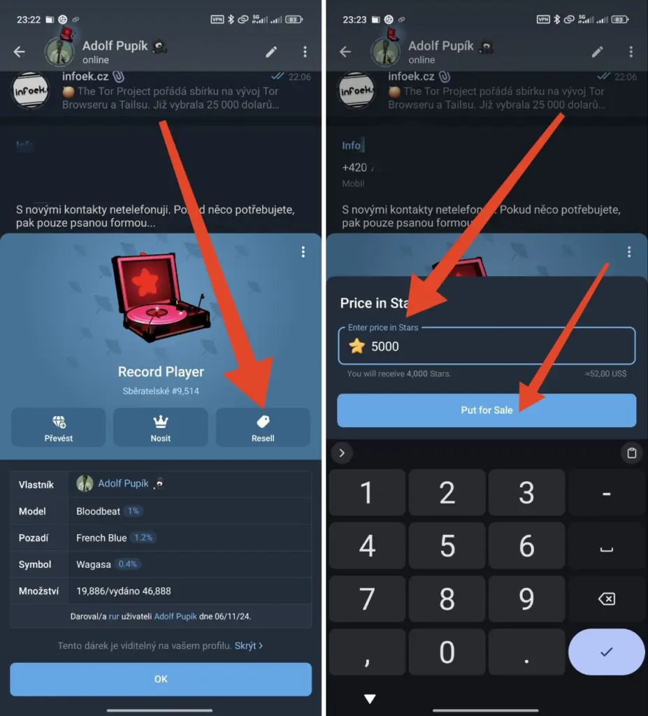 Jak mohu své dárky prodat za Telegram Stars?