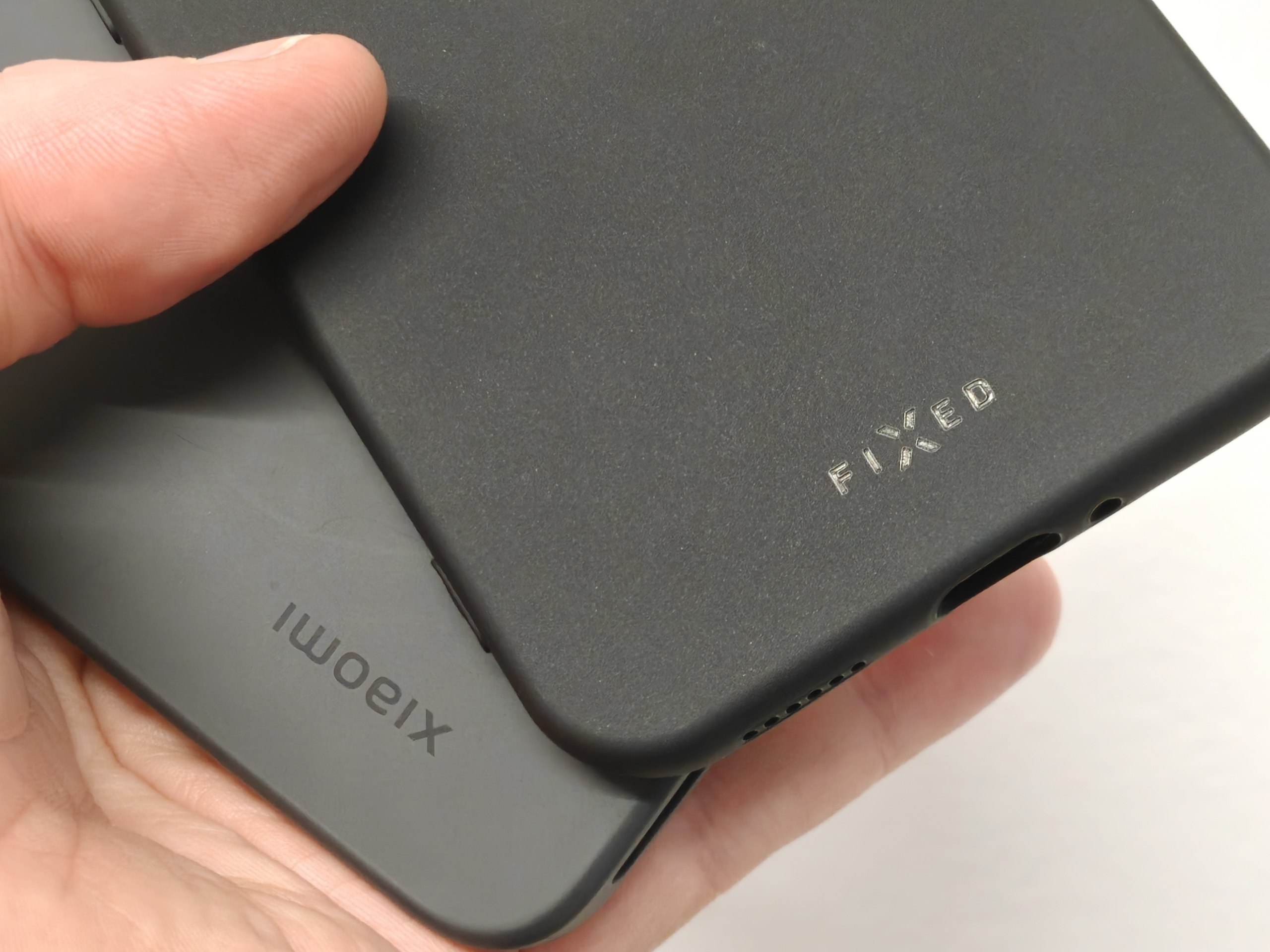Černý silikonový kryt může na e-shopu výrobce vypadat zcela obyčejně, ale skutečnost je trochu jiná. Podobá se originálnímu krytu od Xiaomi, ale je tmavší a nachází se v něm třpytivé tečky. On i samotný povrch je příjemnější a hrany modulu se zadními fotoaparáty jsou o něco lépe chráněny. Oblejší jsou ještě hrany po stranách a tlačítka mají své popisky. Kryt od FIXED zkrátka vypadá lépe.