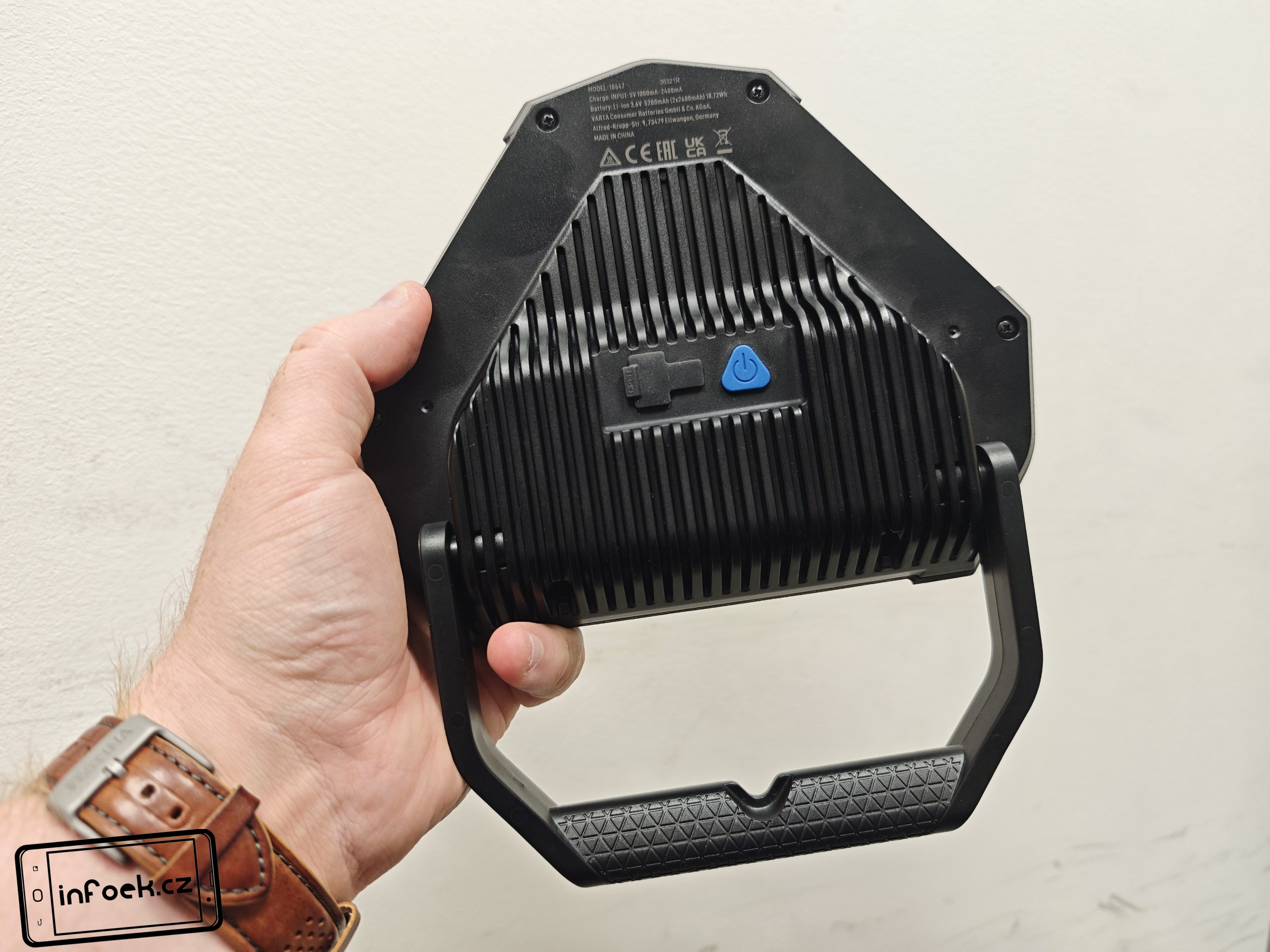 Konstrukce VARTA Work Flex Stadium Light je vyrobena z pevného plastu. Nikde nic nepovrzává a všechny části na sebe přesně lícují. Výrobce se chlubí zvýšenou odolností dle certifikace IP54 – ta sice není určena pro ponoření do vody, ale ranní rosu či prašné prostředí bez problémů zvládne.