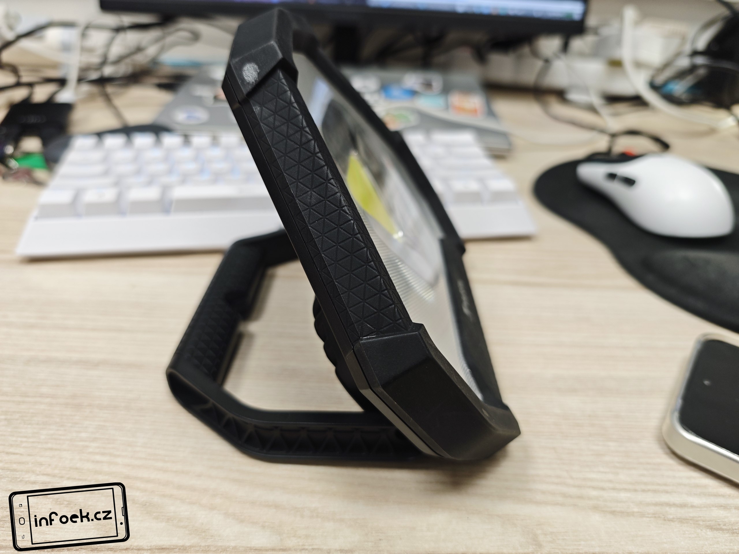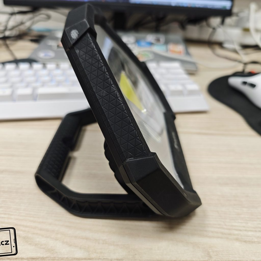 Za zmínku stojí také výsuvný stojánek, který je pevný a umožňuje otáčení podle aktuálních potřeb. Díky němu lze svítilnu postavit na stůl či podlahu, nebo ji zavěsit třeba na větev či hřebík.