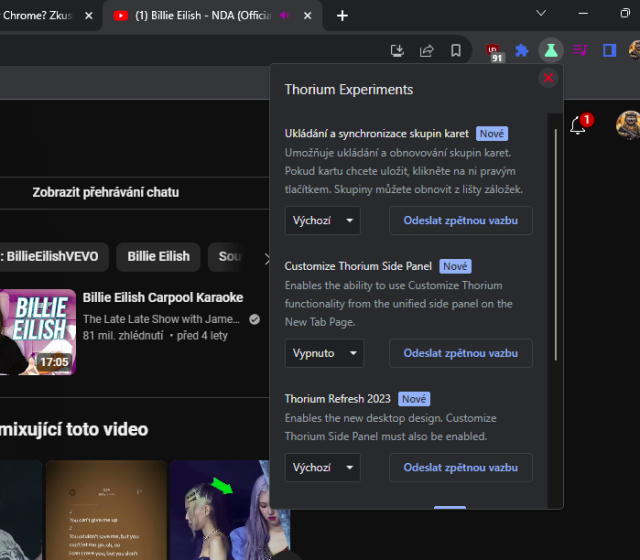 Thorium Browser opět využívá Chromium, takže k dispozici máte dobře známé uživatelské prostředí v češtině. Umí dokonce i synchronizaci s Googlem napříč zařízeními. To můžete ocenit, protože prohlížeč je dostupný i pro mobily a tablety. Hned po prvním spuštění si můžete vybrat výchozí vyhledávač, ihned máte v prohlížeči kvalitní blokátor reklam a sledujících prvků uBlock Origin, přehrávač videí a hudby vpravo nahoře s možností živého přepisu a další běžné funkce. Prohlížeč je také krásně svižný a rozhodně stojí minimálně za vyzkoušení. Řekl bych, že výborně nakládá s mezipamětí a bez problémů jsem hrál i náročné hry v cloudové službě Boosteroid.