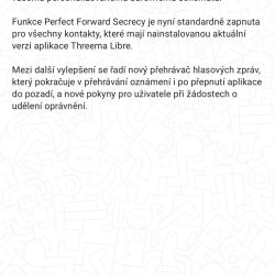 Threema před nějakou dobou přišla s vylepšenou verzí aplikace Threema Libre. Vypadá i funkce stejně, ale je zcela odstřižena od Googlu a Applu. Nenachází se v obchodech žádného giganta a platba za licenci zůstává celá službě, tedy až na daně. Velkou výhodou je fakt, že neobsahuje ani kousek zdrojového kódů Googlu nebo Applu a všechna oznámení fungují na vlastním řešení Threema Push.