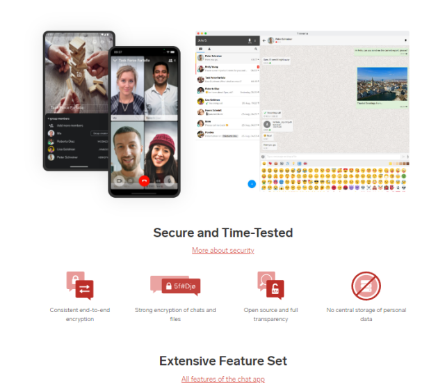 Nejedná se o pouhé chatovací aplikace, ale poskytují také šifrované odesílání souborů v původní kvalitě, hovory, videohovory i skupinové videohovory. Aplikace jsou dostupné pro Android a iOS. K dispozici jsou i aplikace pro desktopy.