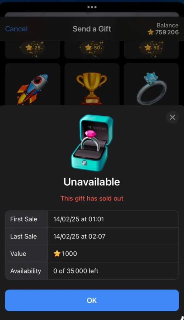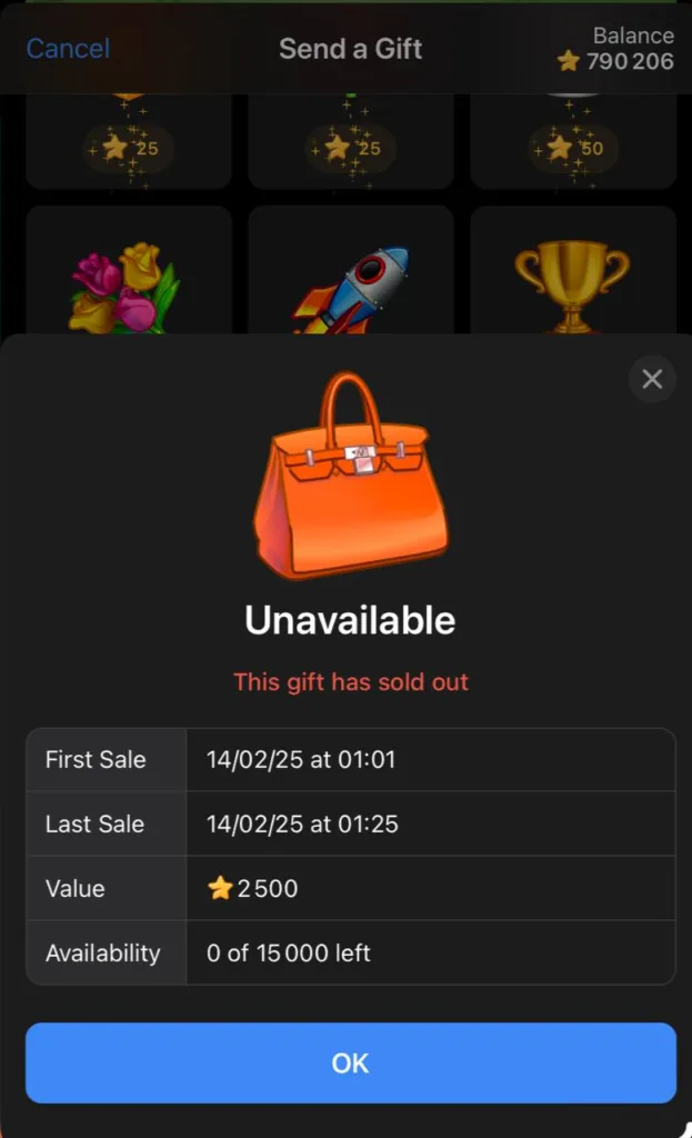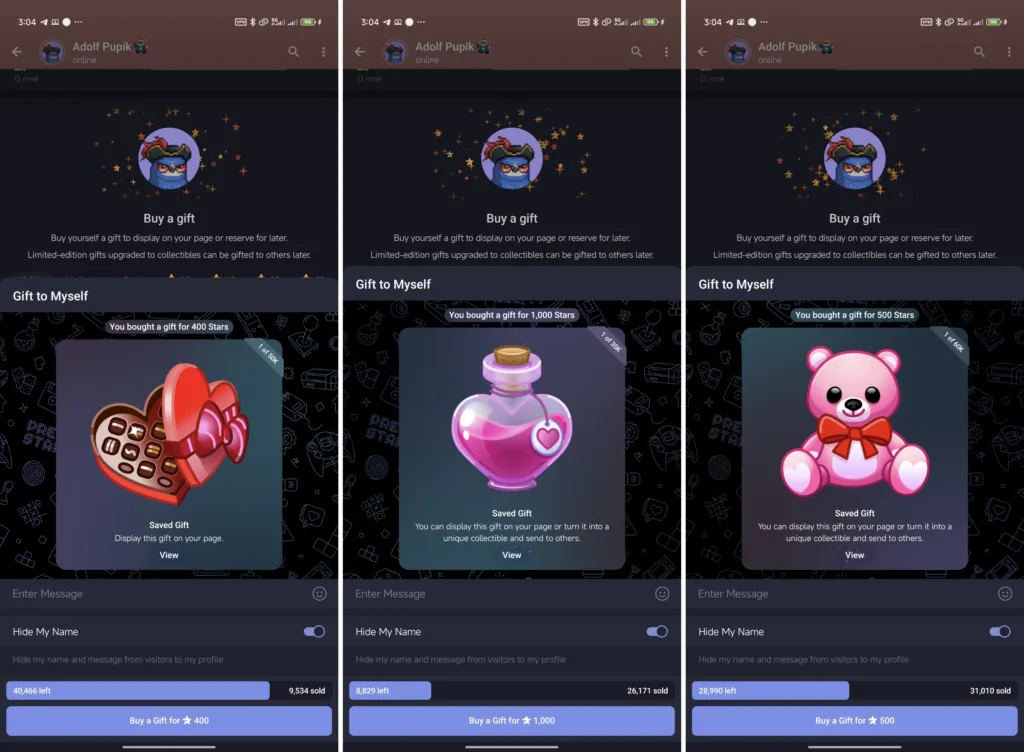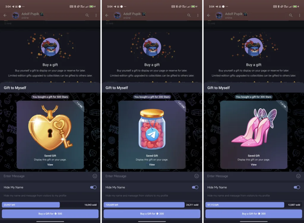 Zakladatel sítě Pavel Durov se na svém kanále pochlubil, že velmi drahé limitované dárky na Valentýn se podařilo vyprodat za pár minut. Vyprodané kousky můžete najít v galérii níže. Pokud sobě či blízkým chcete nějakou limitku pořídit, stále můžete mít šanci. Počty kusů ale bleskově mizí…