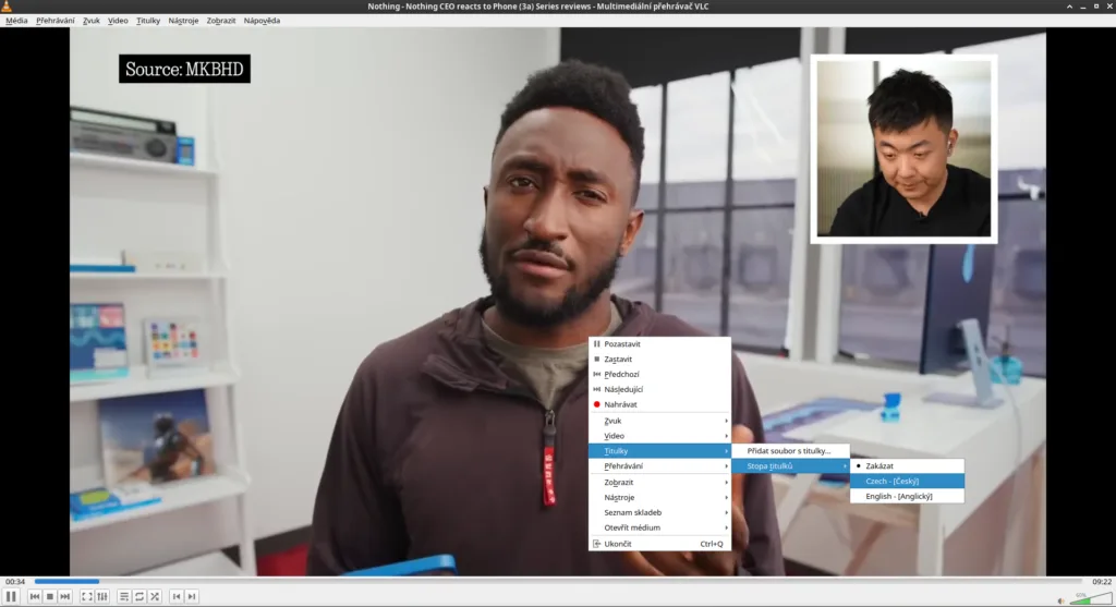 VLC používám na linuxové distribuci EndeavourOS a zařízeních s Androidem. Před pár týdny jsem zjistil, že na linuxu mám funkci již dostupnou. Mohu si stáhnout jakékoliv video z YouTube nebo film bez dostupných titulků. Po zapnutí přehrávání jsou titulky automaticky generovány. Generování probíhá v reálném čase a je velmi svižné i v češtině. Funguje nejen s offline video soubory, ale i během živých přenosů z různých služeb. Samotný překlad z angličtiny do češtiny je dost solidní.