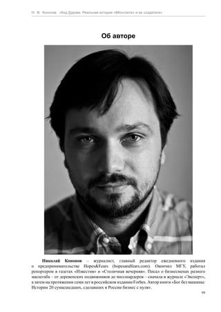 První díl knihy Durovův kód se věnuje Pavlu Durovovi, zakladateli ruské sociální sítě VKontakte. Na domácím trhu se stala nesmírně oblíbenou a jedná se o ruskou obdobu Facebooku. Kvůli svému postoji k ochraně soukromí uživatelů a následným problémům s vládou Durov celou společnost prodal a založil nový projekt – Telegram.