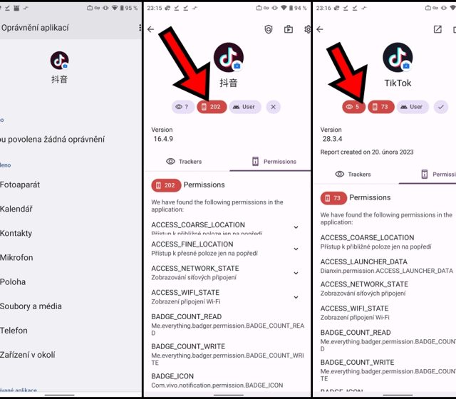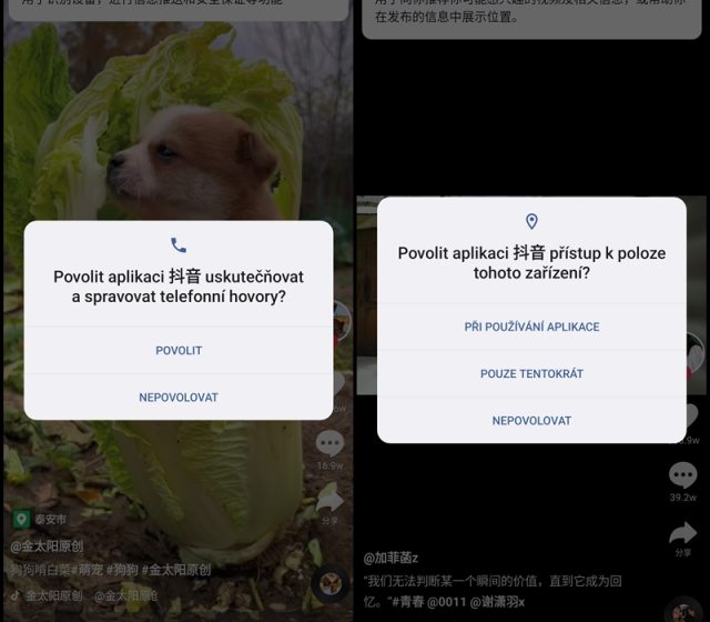 Podíval jsem se tedy na to, k čemu mají aplikace TikTok a Douyin přístup. Při krátkém používání se aplikace Douyin ptá k udělení oprávnění o SIM kartě, uskutečňování telefonních hovorů a samozřejmě nesmí chybět ani přístup k poloze. Při podrobnějším zkoumání aplikace jsem zjistil, že celkem vyžaduje přístup až k 202 položkám, což je extrémní číslo.