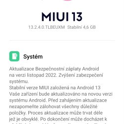 Aktualizace v současné době zahrnuje „jen“ nové bezpečnostní záplaty a systém Android 13. MIUI 14 není pro náš trh v současné době k dispozici na žádný mobil a připravuje se. Na nové prostředí MIUI si tedy budeme muset ještě chvilku počkat.