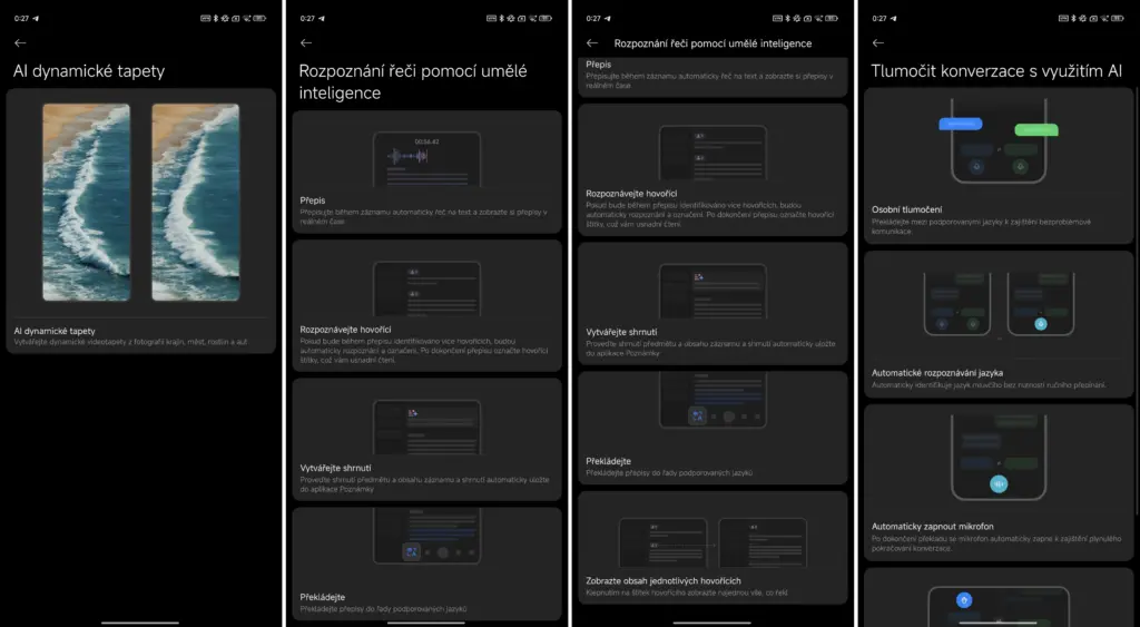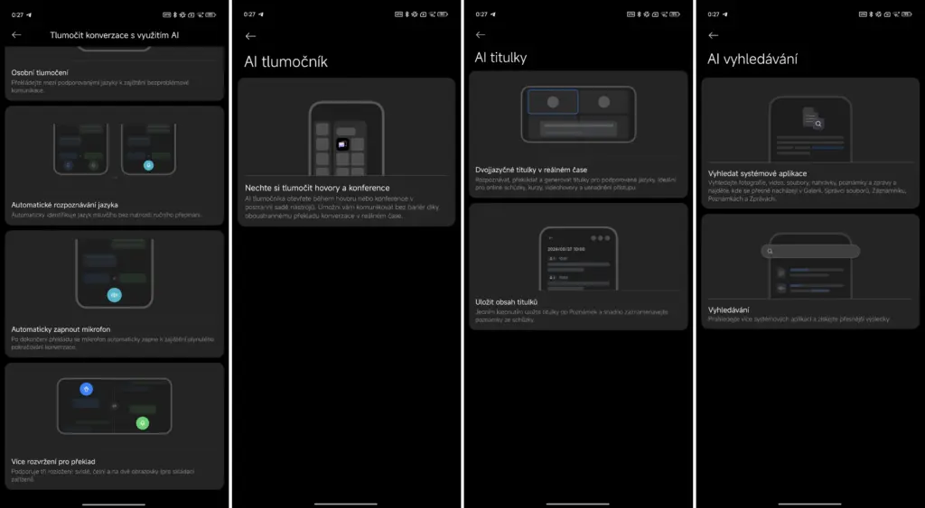 V mobilu Xiaomi 14 Ultra bylo již od jeho vydání dost AI funkcí. Mezi nimi bylo efektivní odstraňování objektů z fotek v PRO verzi, úpravy videí, později AI překlady titulek v jakékoliv aplikaci v češtině a AI překládání konverzace. Nová velká aktualizace přinesla vylepšení z mobilů Xiaomi 15.