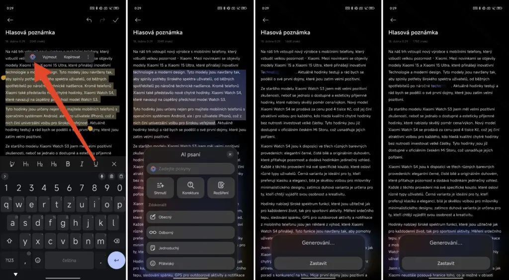 Vylepšeny jsou překlady v AI titulcích a AI tlumočníkovi a umí přepisovat konverzaci na text do aplikace poznámky od výrobce. Tam však můžete ocenit spíš práci s textem. Text můžete označit a klepnout prstem na ikonu HyperAI. Během okamžiku můžete mít z dlouhého textu shrnutí, ale klidně mu můžete zadat příkaz v češtině např. „Důležité informace vypiš do bodů“. Další novou funkcí jsou AI dynamické tapety pro vytvoření animací z běžných fotek. Lepší je nyní AI vyhledávání napříč systémovými aplikacemi a soubory.