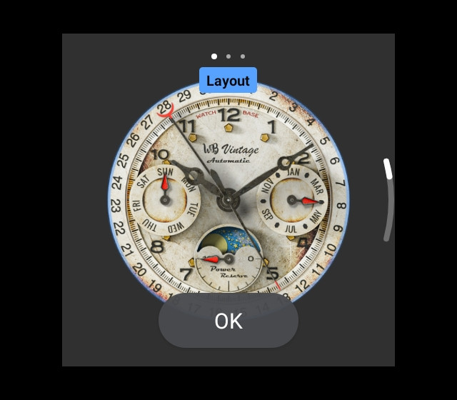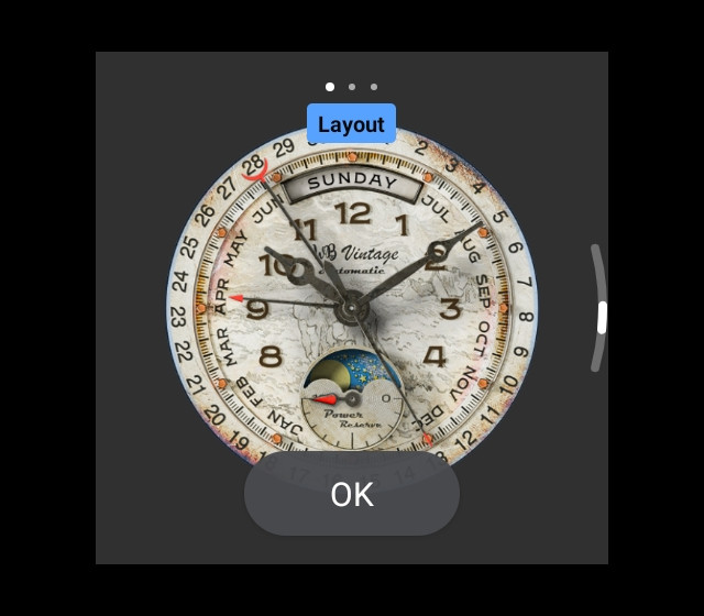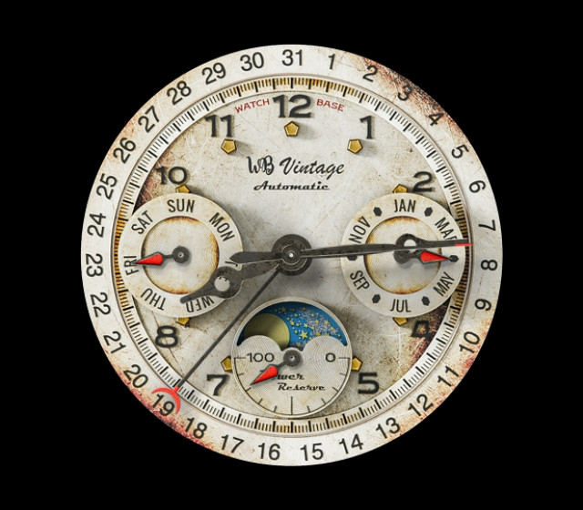 Na tomto ciferníku je vidět, že na něm vývojář pracoval opravdu usilovně. Imituje starší ciferník, ale v úpravách můžete upravit jeho barvu, změnit vteřinovou ručičku a sklíčko. Můžete tak výborně imitovat prasklé sklíčko starého ciferníku.