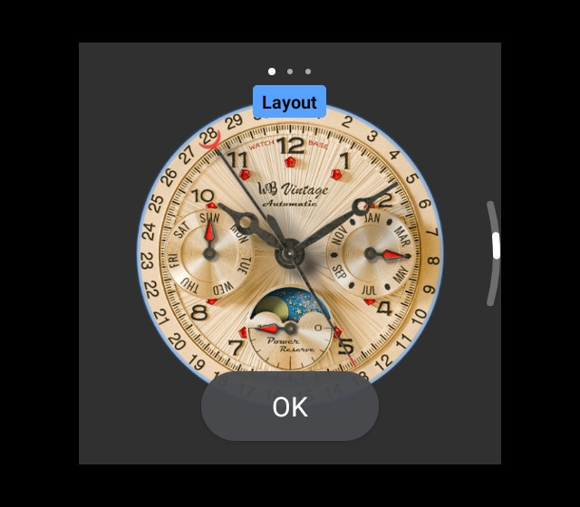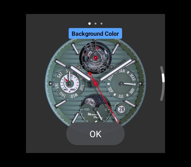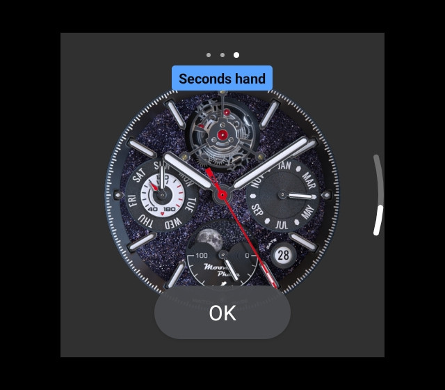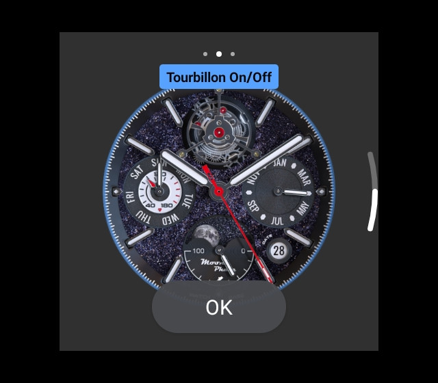 Tento ciferník nemá tolik nastavení, ale vizuálně je krásný a upravit si můžete i jeho barvu. Zajímavý je v tom, že nabízí fáze Měsíce podle času. Tu najdete níže v ciferníku, a tam se po klepnutí prstu dostanete do více informací a dokonce i fotky fáze.